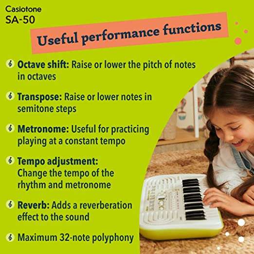 In conclusion, the Casiotone Mini Keyboard SA-50 with piano tones is perfect. Its compact design, versatile sounds, and portability make it ideal.