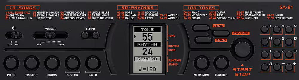 Songs from all over the worldThe SA-81 features 10 built-in songs to play along with and get things started. |
