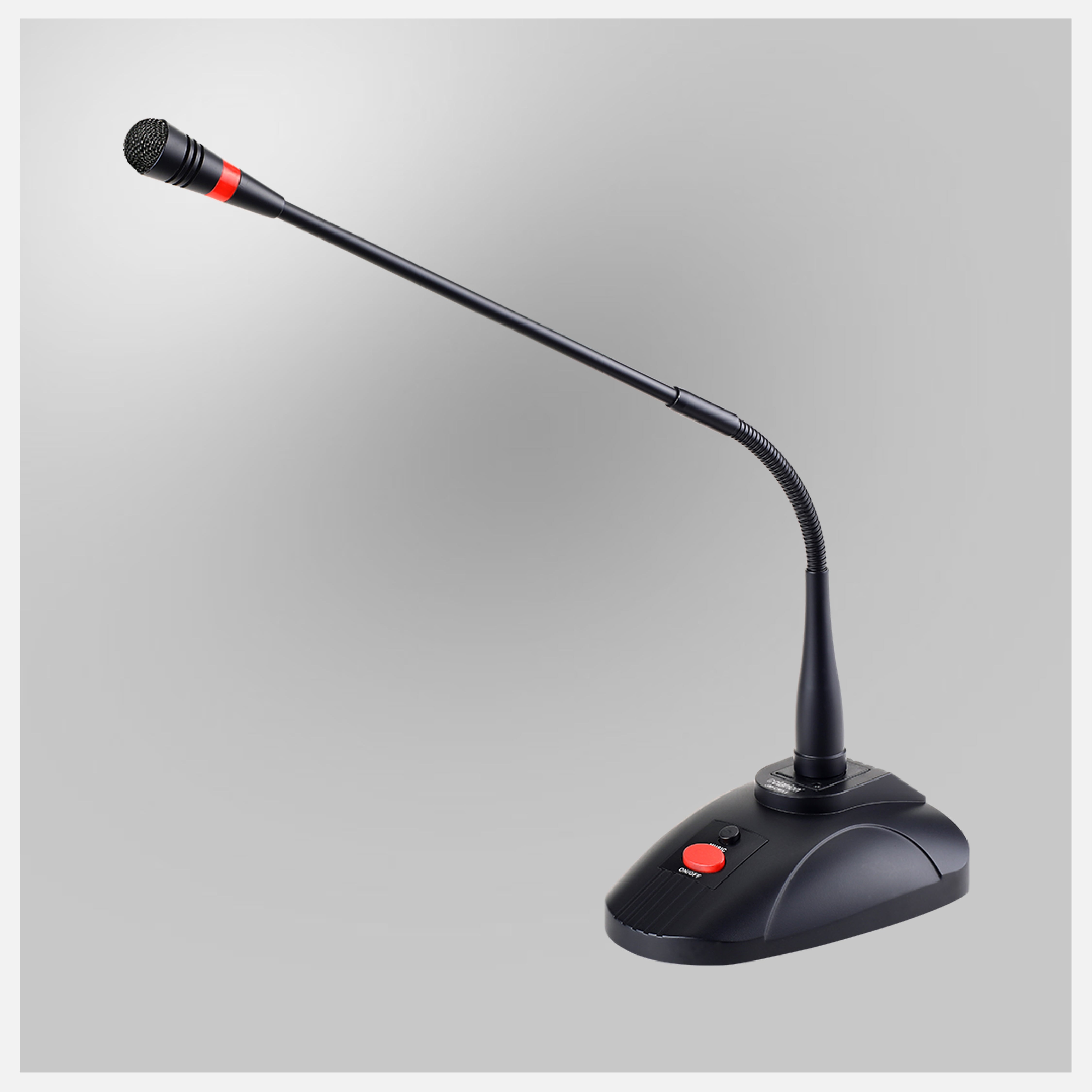 Design: Typically features a gooseneck-style or desk-mounted base suitable for fixed speaking positions in conferences and meetings.