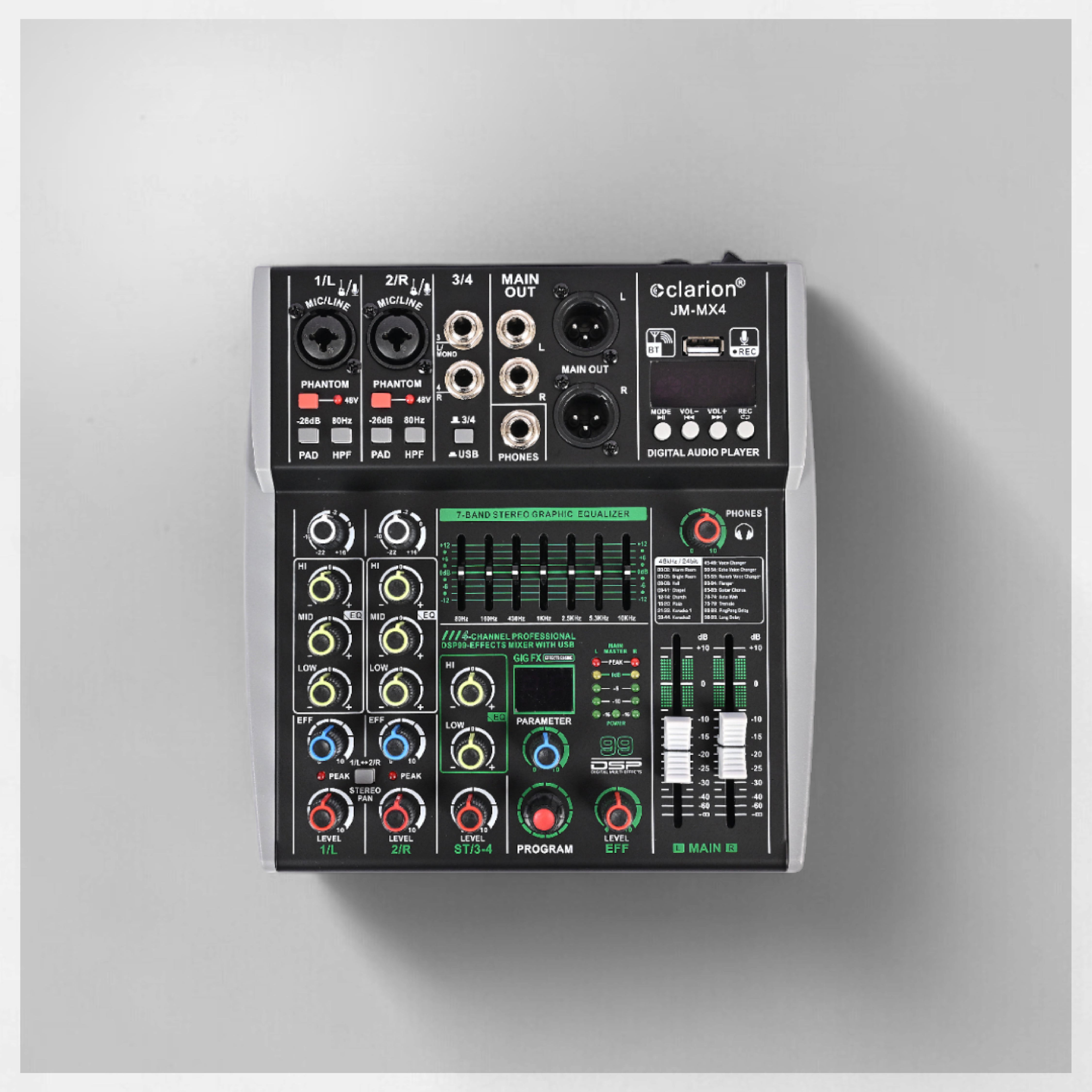 7-band graphic equalizer for tone shaping.