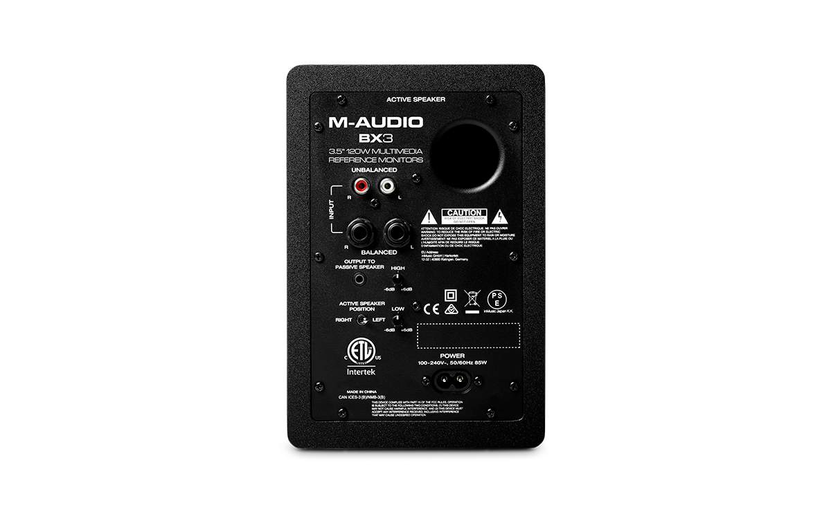 | Included Components | BX3 Speakers (Stereo Pair: 1 Passive Speaker and 1 Active Speaker); Foam Feet; 2-Prong IEC Power Cable; 1/8” TS Speaker Interconnect Cable; 1/8” to 1/8” TRS Aux Cable; 1/8” TRS to RCA Cable; User Guide; Safety & Warranty Manual |