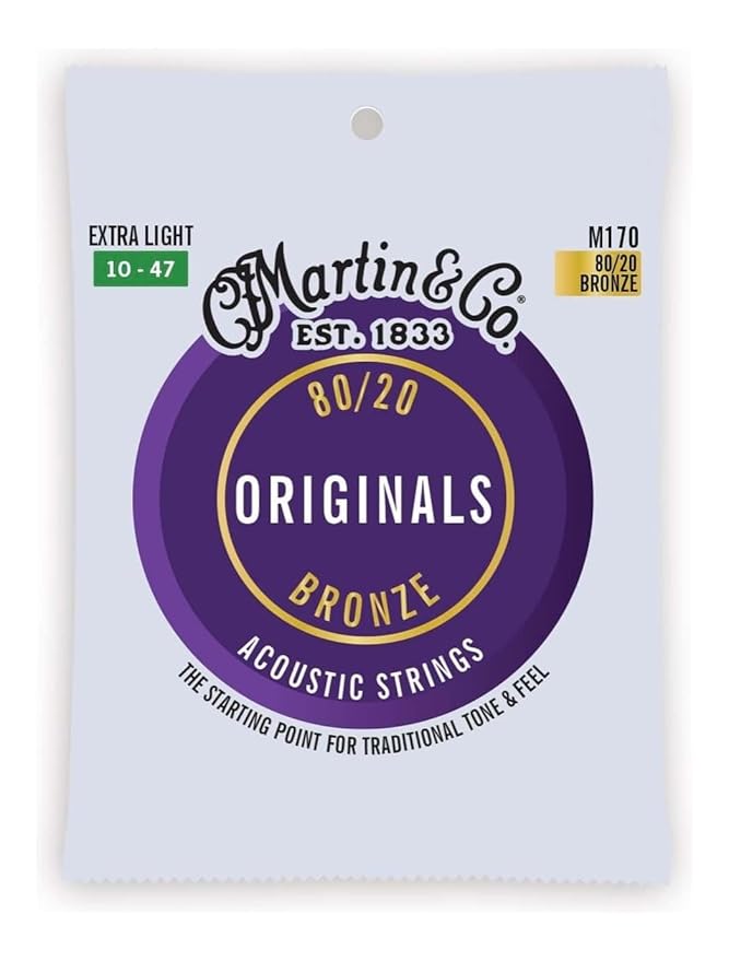 Martin Acoustic Strings provide unrivaled quality, craftsmanship, and tone for your acoustic guitar. Designed to produce true, consistent tone, these light-gauge strings provide excellent tuning stability and playability so your guitar can stand up to your rigorous practice and performance schedule. The string that started it all 50 years ago is now back by popular demand! Made from 80/20 bronze, this string is perfect for daily use and all playing styles. They will hold up after hours and hours of playing so you can practice, jam, record, and perform. This pack of professional-grade guitar strings will last through long jam sessions, late-night campfire songs, and plenty of picking. With these strings, you'll get a consistent tone that you can count on song after song. Designed to bring out your guitar's true tone, these bronze guitar strings can be used for finger-style blues, rock, Americana, country, bluegrass, ragtime, and many more styles. With this pack, you'll receive 6 light-gauge guitar strings.
