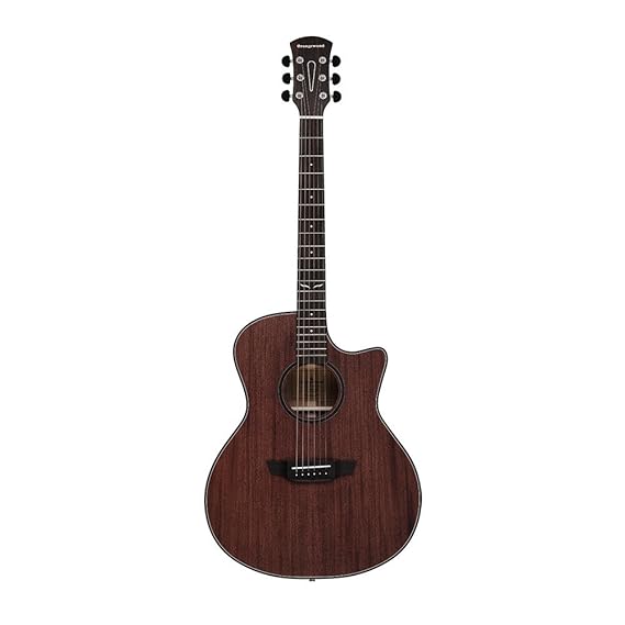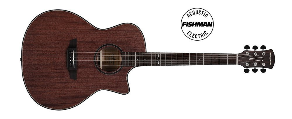 Body Shape: Grand Auditorium Cutaway • Top Wood: Solid Mahogany • Back / Sides: Layered Mahogany • Neck: Mahogany • Fretboard: Rosewood (sonokeling) • Bridge: Rosewood (sonokeling) • Pickguard: Included (Optional) • Gig Bag: Included Orangewood Morgan Live Specs: • Strings: Ernie Ball Earthwood Medium Light • Electronics: Fishman Sonitone EQ • Tuners: Chrome Die-Cast • Neck Shape: C • Scale: 25.5" • Nut / Saddle: Bone • Nut Width: 44mm • Bracing: Scalloped X • Finish: Natural Satin