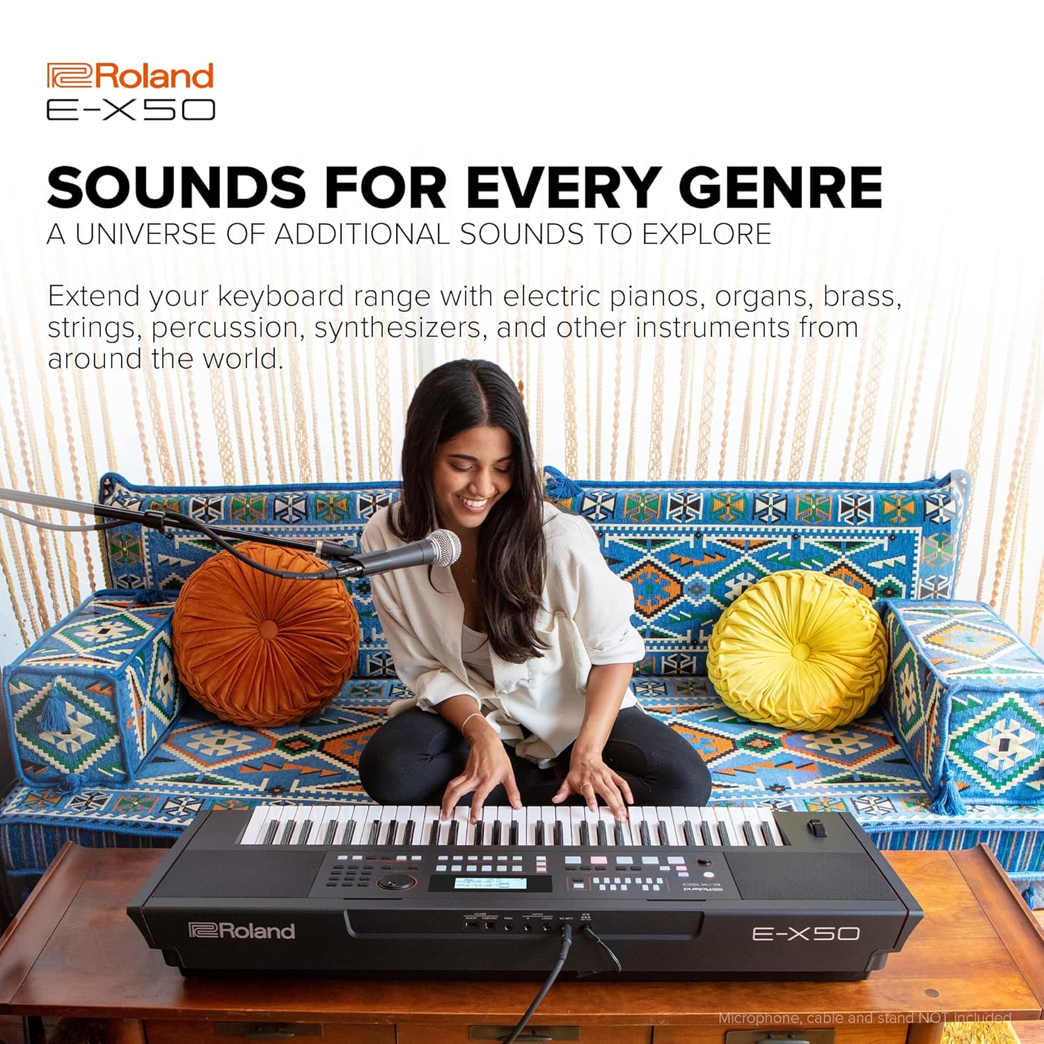 Moreover, the Roland E-X50 features built-in effects such as reverb and chorus. These effects enhance your sound, adding depth and atmosphere to your performance. With easy-to-use controls, adjusting your settings is quick and simple. You can easily navigate between sounds, rhythms, and effects, enabling smooth transitions during your performance. The clear display ensures that you can see all your settings clearly without distraction.